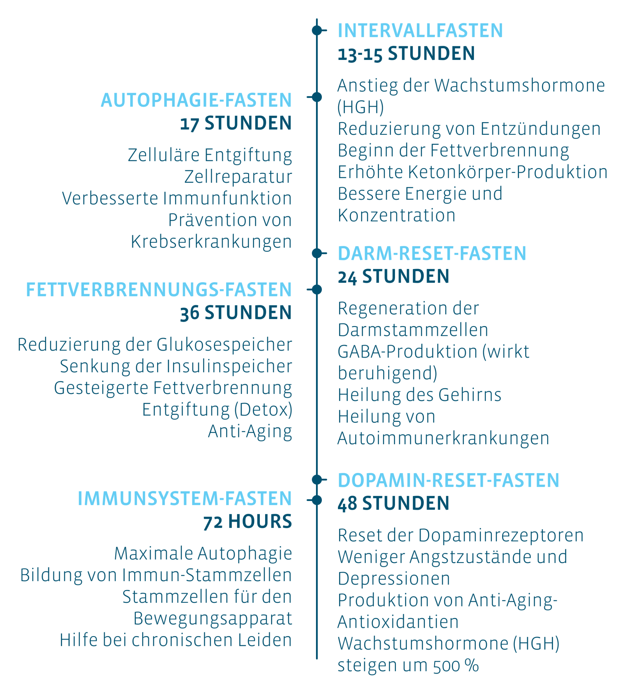 Hilfreich ist es, sich im Verlauf der Fastenzeit bewusst zu machen, welche positiven Effekte mit zunehmender Dauer des Fastens entstehen können.